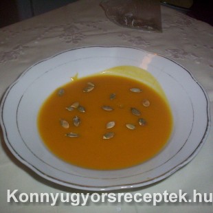 Amikor megpuhult a tök és a krumpli leszűröm a levest és turmixgépben pépesítem a tököt és krumplit, majd ráöntöm a leszűrt levét, hozzáadom a vajat és tejszínt és éppen csak felforralom. Fogyasztáskor pirított tökmagot, napraforgót, vagy kenyérkocát kínálok hozzá.