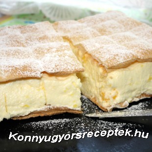 A leveles tésztából 2 lapot sütünk. Sütés előtt benyomjuk (vágjuk) a szeletekhez.