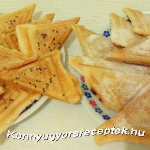 A tepsiben lévő tésztára simítjuk, rátesszük a másik lapot, villával megszurkáljuk, és szép rózsaszínűre sütjük.