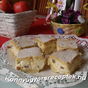 A liszthez kavarjuk a sütőport,majd elmorzsoljuk benne a margarint. Ezután a többi hozzávalóval együtt összegyúrjuk. Két cipót formálunk belőle.Az egyiket kinyújtjuk,és kibélelünk vele egy közepes méretű tepsit.