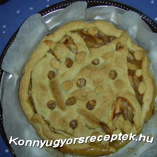 Egyik felét kinyújtjuk, és a formába tesszük, majd az almát a tésztára halmozzuk úgy, hogy középen több legyen.