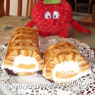 A piskótát megkenjük a lekvárral, feltekerjük, és vékony karikákra vágjuk. Ez őzgerinc formát folpackkal kibélelünk, kőrbe kirakjuk piskóta szeletekkel, belesimítjuk a túrókrém felét, kirakjuk a lecsöpögtetett őszibarackkal, rásimítjuk a másik fele krémet, majd befedjük a maradék piskótával. Ráhajtjuk a lelógó folpac-ot, és legalább egy éjszakára a hűtőbe tesszük, Másnap szeleteljük.