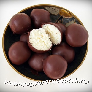 Ezután vegyük ki a fagyasztóból a kókuszgolyókat, majd egyesével vonjuk be az olvasztott csokoládéval.