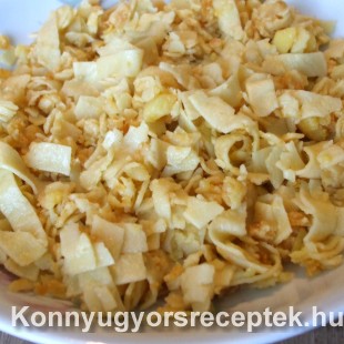 A tésztához hozzákeverjük a krumplit és lehet tálalni.