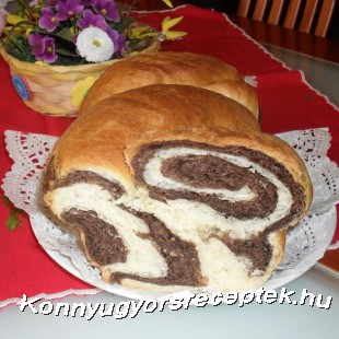 Kis tejben pici cukorral az élesztőt felfuttatjuk. A többi hozzávalóval összedolgozzuk, szép sima tésztát kapjunk. Meleg helyen duplájára kelesztjük. Ketté vesszük a tésztát egyik felébe 2 kanál tejjel elkevert 2 kanál kakaóport keverünk, belegyúrjuk. Ekkor ismét kettőbe vesszük a tésztákat, így lesz: 2 db kakaós, 2 db fehér tésztánk. Ismét kelesztjük. Ha megkelt az egyik kakaós tésztát kinyújtjuk olyan hosszúra mint a forma amiben sütjük- félretesszük, kinyújtunk egy fehér lapot, ráhelyezzük a kakaóst, feltekerjük. Így járunk el a másik két lappal is, és a két fonatot összetekerjük. Sütőpapírral bélelt formába tesszük, majd ismét kelesztjük. 180 fokra előmelegített sütőbe tesszük- a tetejét lekenjük olvasztott margarinnal. ( a sütő aljába kis lábasba vizet teszünk-gőzös lesz a sütőnk) Szép pirosra sütjük, kb. 45-50 perc. Fele időnél, ha nagyon pirulna letakarjuk alufóliával. Sütőből kivéve ismét megkenjük olvasztott margarinnal, majd letakarva a formában hagyjuk kihűlni.
