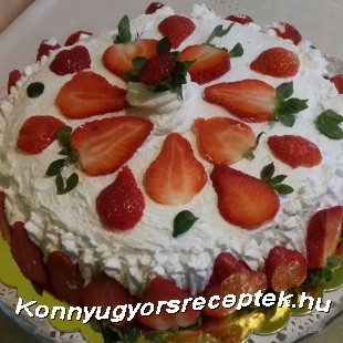 Majd ráhelyezzük a második piskótalapot jól lenyomkodjuk majd a maradék krémmel bekenjük a lapot ,szintem megszórjuk eperrel .