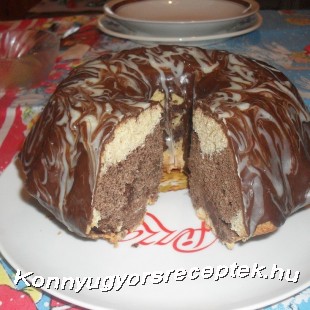 A kuglóf formát alaposan kivajazzuk, lisztezzük. A lisztet összekeverjük a sütőporral , a csokit finomra reszeljük. A vajat kézi mixerrel habosra keverjük a cukorral , vaníliás cukorral, sóval. A tojásokat egyesével hozzáadjuk, és alaposan eldolgozzuk. A lisztkeveréket apránként a masszához adjuk, és a tejet is. A masszát kétfele vesszük. Egyik részéhez megy a mandula, a másik részéhez a csokoládé, és a rum. A világ színű massza felét beleöntjük a formába, rá a csokis, majd a maradék fehér , villával kicsit összekeverjük. 180 C fokos sütőbe az alsó rácson kb.45-50 percig sütjük. ( tűpróba).A sütőből kivéve, kb. 10 percig a formában hagyjuk, majd rácsra borítjuk. Az étcsokoládés bevonót kevés olajjal gőz fölött megolvasztjuk , bevonjuk a kuglófot, ha kicsit kihűlt, a megolvasztott fehér csokival csíkokat húzunk rá, és hurkapálcával kissé széthúzogatjuk.