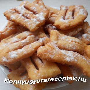 Forró olajon kisütöm. Sülés után konyhai papírtörlőre rakom, hogy a felesleges olajat felszívja, majd porcukorral mindkét oldalát beszórom.