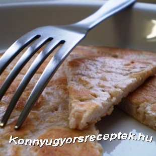 A felmelegített, teflonos serpenyő közepére lassan, folyamatosan belecsorgatjuk a masszát, és hagyjuk, hogy magától terüljön szét.