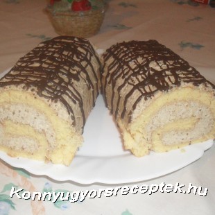 A kihűlt piskótát megkenjük a krémmel, a külsejét is vékonyan, majd tetszés sz. díszítjük. (én most csokicsíkokat húztam rá.)