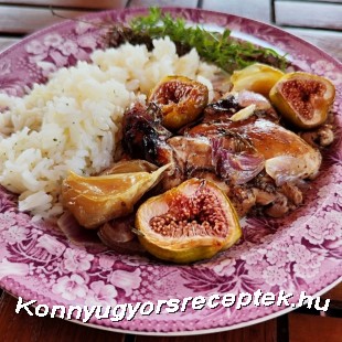 4. Alufóliával lefedjük, majd előmelegitett sütőben 180 °C-on kb 30 perc alatt puhára sütjük, ezután alufólia nélkül addig sütjük tovább, amig a combok szép aranyszinűre sülnek.