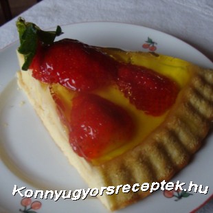 Az epret megmossuk, felszeleteljük,elrendezzük a tortán.