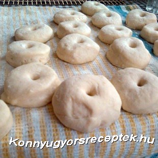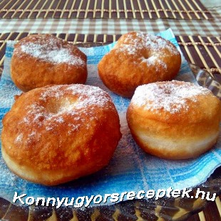 A tészta hozzávalóit jól kidagasztjuk, majd egy órát hagyjuk kelni. Utána kinyújtjuk, majd kiszaggatjuk ujjnyi vastagra. Lisztezett konyharuhára rakjuk őket, majd fakanál nyelével középen átlyukasztjuk. Hagyjuk fél órát kelni, majd közepesen forró olajba többször megforgatva kisütjük.