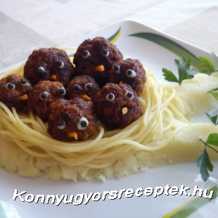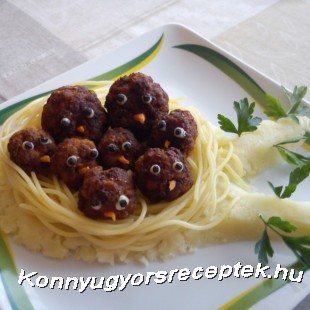A darált húst elkeverjük a tojással, a zúzott fokhagymával, a fűszerekkel és a (vízbe áztatott, majd kinyomkodott) kenyérrel. Golyókat formázunk, melyeket bő forró olajban készre sütünk. A burgonyát sós vízben megfőzzük, majd a vajjal együtt megtörjük. A fasírtgolyókra a majonéz és a bors segítségével szemeket készítünk, sárgarépából pedig apró csőröket. Tálaláskor a tört burgonyából faágat készítünk, a megfőtt spagetti tésztából fészket, amibe belehelyezzük a fasírt fiókákat.