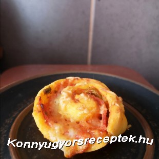 Megkenjük a paradicsompürével, elhelyezzük rajta a szalámi szeleteket és megszórjuk sajttal. Feltekerjük, tetszőleges vastagságúra szeleteljük és pár cm távolságra egymástól bélelt tepsire helyezzük őket.