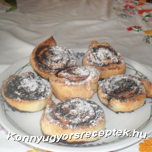 A tészta hozzávalóit összekeverjük, kicsit állni hagyjuk. Téglalappá nyújtjuk, megkenjük olvasztott vajjal, megszórjuk az édesítővel elkevert kakaóval, és feltekerjük. Jó ujjnyi vastagra vágjuk, és sütőpapírral bélelt tepsibe tesszük. 180 C fokon szép pirosra sütjük. ( kb. 30 perc)