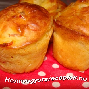 A muffin formát kibéleljük papírkapszlikkal, és 3/4 részig megtöltjük a masszával, majd a tetejére szórunk sajtot.