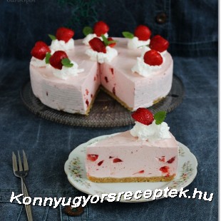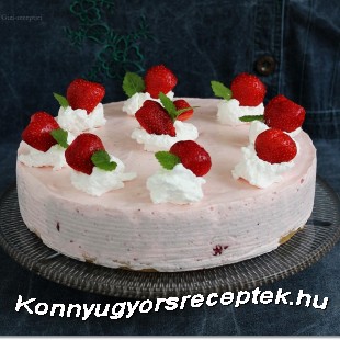 A megdermedt tortát vegyük ki a tortát a hűtőből, majd ízlés szerint tejszínhabbal és eper díszítsük.
