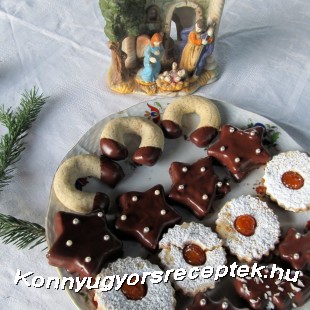 Ízlés szerint cukorgyönggyel díszíthetjük, amíg még forró a csoki. Ha a csoki megszilárdult, vegyesen egy tálra rendezzük a háromféle linzert.