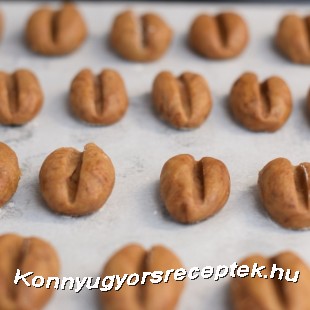 Egy tálban elkeverjük a vajat a cukorral amig homogén masszává nem válik. Ezután adjuk hozzá a tojást és keverjük tovább. Adjuk hozzá az instant kávét és a lisztet. Óvatosan gyúrjuk össze mert nagyon omlós puha. Dió méretű golyókat formáljunk és tegyük egy tálcára őket. Egy hurkapálcika segítségével középen nyomjunk bele egy mintát mélyen mintha elakarnánk vágni, de mégse. Ha ezzel elkészültünk akkor tegyük egy órára a hűtőbe pihenni.