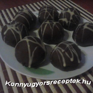 Amikor az is kész, akkor a fehércsokit is felolvasztjuk de nem kell bele étolaj, és zacskó sarkába tesszük, és a bonbon tetejére csurgatunk vele. Amikor kész, akkor maffinos papírba tesszük és visszatesszük a hűtőbe.