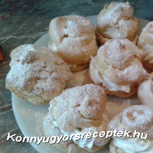 A vizet ,a vajat,a sót, a cukrot felesszük főni és ha felforr beleöntjük a lisztet és állandóan kavarjuk .Addig amíg össze nem áll és elkezd recsegni a tészta.Lehúzzuk a tűzről és egy tojást gyorsan elkeverjünk benne,hagyjuk kihűlni ,ha langyos akkor egyenként hozzáadjuk a többi tojást és nagyon jól kidolgozzuk. Egy sütőpapírral kibélelt tepsibe diónyi nagyságú tészták teszünk.Távol egymástól mert össze nőnek.180 c előmelegített sütőbe tesszük ,és teszünk egy tálba vizet ,hogy gőzben süljön,így könnyű lesz a tészta.20 perc után visszavesszük a hőt 140 c még 15 percig inkább szárítjuk,mint sütjük.Ha megsült kivesszük a sütőből és még melegen recés késsel levágjuk a tejét a fánkoknak ,hogy a gőz távozzon.