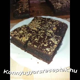 A száraz hozzávalókat összekeverjük, utána hozzáadjuk, a többi hozzávalót piskótaszerű tésztát kell, hogy kapjunk! A fél tábla csokit a fél deci tejjel mikróba megolvasztom és ezt is a tésztához adom, összekeverem és 25x35 ös kilisztezett tepsibe öntöm. Előmelegített sütőbe 160 fokon 20 -25 perc alatt megsütöm, de közbe tűpróbával ellenőrzöm.