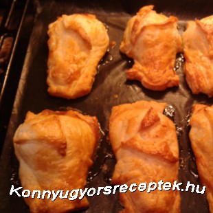 Az előmelegített sütőbe toljuk kb 20-25 percre,amíg a tészta szép pirosra ,ropogósra sül.