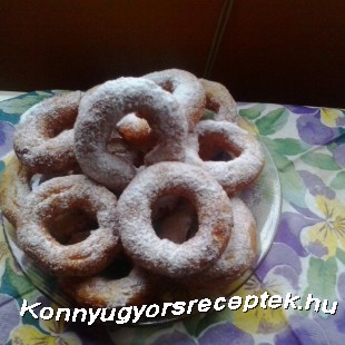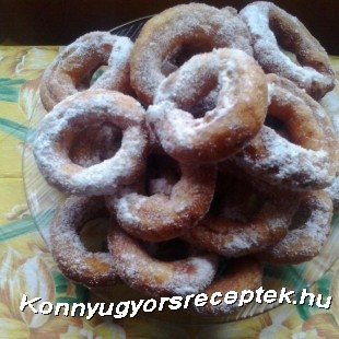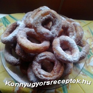 Majd felhevített olajban pirosra sütjük mindkét oldalát. Díszítésnek porcukrozzuk meg a pereceket.