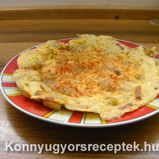 Én a végén a tojást a palacsintához hasonlóan feldobva átfordítom így nem eshet szét. Aki szereti, a szalonna mellé tehet pár karika füstölt kolbászt is.