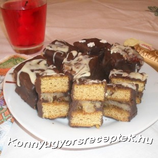 A margarint a cukorral, és a mézzel vízfürdő felett össze melegítjük, a tűzről levéve hozzáadjuk a tojást, a margarint, és a többi hozzávalót. Össze gyúrjuk, majd vajjal lekent gáztepsi hátán megsütjük, 175 C fokon, kb. l5 perc. A lapot hosszában kettévágjuk, megkenjük a (fele ) lekvárral amibe belekevertük az apróra vágott torpimixet. Folpack között kinyújtjuk a marcipánt ráfektetjük a lekvárra. Megkenjük a maradék lekvárral rátesszük a másik lapot . Fóliával letakarjuk, kicsit lenyomtatjuk. Pár órára hűvösre tesszük. Majd kisebb kockákra vágjuk, és csokoládéval bevonjuk, tetszés szerint díszíthetjük.