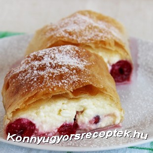 Ezután hajtsuk rá a tésztacsíkot, majd a konyharuha segítségével tekerjük fel a rétes.