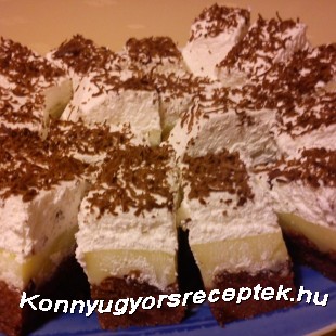 Végül a tejszínt kemény habbá verjük, és a pudingra kenjük. Tetejére csokoládét reszelünk.