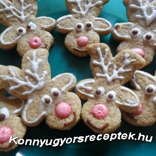 5. Zsírpapírból hajtogatott habzsákba töltjük, megrajzoljuk a rénszarvasokat a feje tetejére állított formára. Olvasztott csokival a száját és a szemét díszítjük.