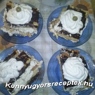 Összekeverjük a túrót, a tejszínt és a vaníliás cukrot. Ekkor egy üveg tálba, vagy tepsibe letesszük az első adag gofrit, megkenjük a túrós krémmel. Majd megcsináljuk a pudingot, ezt tesszük a következő gofri rétegre, aminek a tetejét megkenjük Nutellával. Ennek a tetejére teszünk még egy sor gofri réteget, végül ráöntjük a csokimázat és tejszínnel díszítjük.