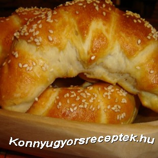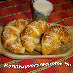 4. A kifliket tepsibe rakjuk és 1 órán keresztül meleg helyen kelesztjük. Sütés előtt mindegyik tetejét megkenjük tojással,megszórjuk tetszőlegesen szezám maggal,len maggal,mákkal,köménnyel,reszelt sajttal.