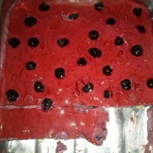 A piskótára rákenjük a szedres krémet, egyenletesen eligazítjuk, egy-két szedret ráteszünk díszítésnek, majd értelem szerűen megcsináljuk a zselét (felöntjük forró vízzel, és elkeverjük), majd ráöntjük a sütire.