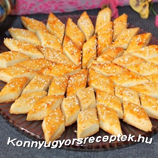 Az élesztőt felfuttatjuk kevés langyos tejben. A kimért lisztet tálba tesszük, hozzáadjuk a margarint, a zsírt, a tojássárgákat, a reszelt sajtot, a tejfölt, a sót, végül a felfuttatott élesztőt.
