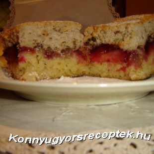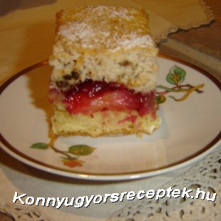 7.Mikor már majdnem megsült a tésztánk ráöntjük a masszát és kb.még 10 percig sütjük.Vigyázzunk ne égessük el a tetejét.