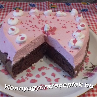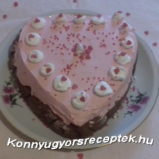 Egy szív alakú sütő formát kikenünk olajjal ,és formára vágott sütőpapírral,és ebbe a formába simítjuk a csokis piskóta masszát.