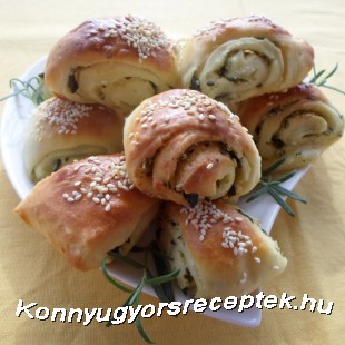 Krémmel megkenjük, összeaprított tökmaggal megszórjuk, és feltekerjük.