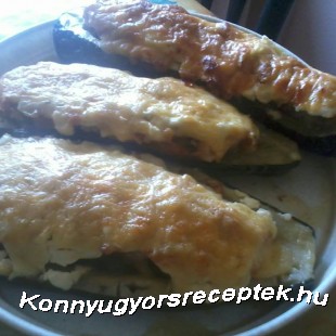 stb...Megtöltjük a masszával a cukkininkat,rakunk rá tejfölt és megszórjuk reszelt sajttal.
