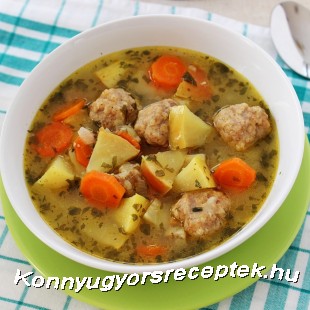 Amikor a zöldségek félpuhára főttek, tegyük a levesbe az előzőleg elkészített húsgombócokat, és főzzük tovább.