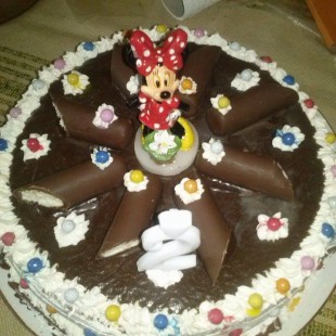 A félbevágott piskótalapok közé töltjük a túrókrémet, és a maradékkal bevonjuk a tetejét és az oldalát is, ha van kedvünk, nyomózsákkal csinos mintát is rajzolhatunk a peremére, hogy később ne tudjon lefolyni a csokimáz róla.