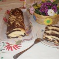 A piskótához a tojások fehérjét a cukorral kemény habbá verjük. Hozzáadjuk a tojássárgákat, az olajat és vizet és óvatosan összeforgatjuk. Végül a kakaóporral elkevert lisztet forgatjuk bele óvatosan.