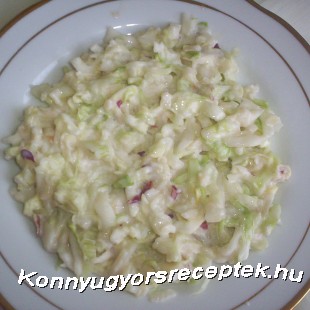 A káposztát vékonyra fel kell szeletelni, de természetesen gyalulható is. A vöröshagymát megtisztítás után szintén vékonyra szeleteljük, majd az almát héjastól le kell reszelni és kevés, ( 2-3 csipetnyi) sóval meghintjük.