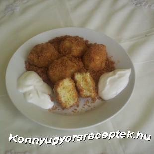 A hozzávalókat összekeverem, kicsit állni hagyom, majd a gombóccá formált darabokat enyhén sós vízben kifőzöm. Közben kevés olajon megpirítom a zsemlemorzsát. A kifőtt gombócokat beleforgatom a zsemlemorzsába, és tejföllel tálalom.