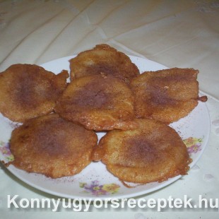 Utána egy 5,5 cm átmérőjű pohárra kiszaggatom, de lehet késsel négyzet alakúra is vágni, majd felvert tojásba mártás után forró olajban szép aranysárgára kisütöm. Papírszalvétára kiszedve, tetejét megszórom kakaóval vagy fahéjjal. Remélem lesz akinek elnyerte a tetszését.