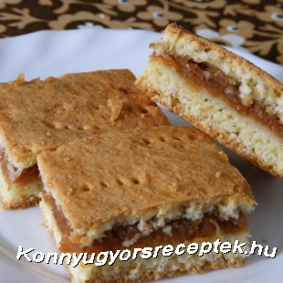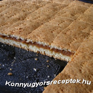 Ha kész a tésztánk félbevágjuk. Az egyik felet kinyújtjuk a tepsi aljának méretére és belehelyezzük a vajjal megkent és zsemlemorzsával megszórt tepsibe. A tetejét vékonyan megkenjük baracklekvárral és megszórjuk egy kevés búzadarával. Ezután kanállal rákenjük a megpárolt almát majd erre ráhelyezzük a tészta másik felét is amit ugyanúgy kinyújtottunk mint az elsőt.