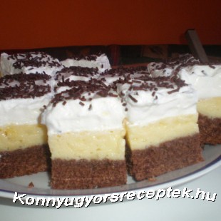 A krémet kenjük a tésztára,majd toljuk vissza a sütöbe 10-15 percre,közepes lángra.Hagyjuk kihülni majd kenjük a tészta tetejére a felvert tejszint és szórjuk meg tortadarával.